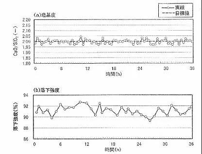 可以看到,即便在日本成熟的鋼廠中,設定堿度值為 2.00 的情況下,實際生產的堿度值 也有著大幅度波動;而所得燒結礦質量(落下強度)也有著很大波動,且質量偏低,普遍低 於 90。