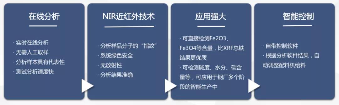 SpectraFlow在線礦石品位智能分析係統以近紅外光作為發射源,安全綠色,可實時檢測傳送帶上物料成分:包括總鐵、水分、碳含量、堿度等,而且可區分磁鐵礦、赤鐵礦、菱鐵礦等不同類型的鐵礦石。它強大的數據庫和超快超密集的檢測頻率,使得實時檢測的結果準確、代表性強。同時,它自帶控製係統,可根據設定和檢測結果,自動調節給料機加料,實現配料過程的的自動化、智能化。極大降低了鋼廠鐵前係統原料方麵及人員波動性風險。可想而知SpectraFlow在線礦石品位智能分析係統的應用,可在鋼廠的降本增效和智能化改造中發揮重要的力量!